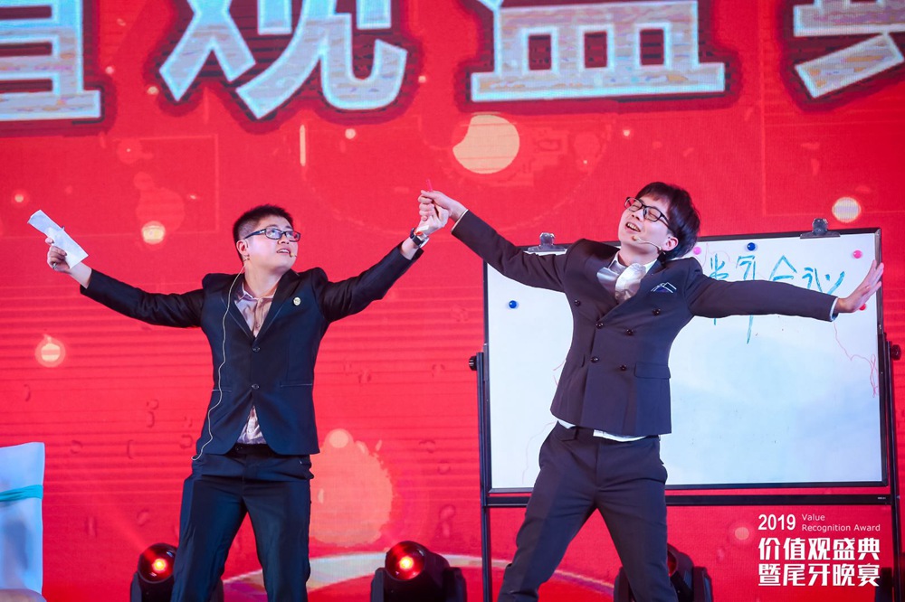 古裝禮服的高管與古風(fēng)街舞dancer組合一對(duì)對(duì)CP,成為本次晚會(huì)最大的驚喜。他們自信的氣場震撼全場,現(xiàn)場歡呼與閃光燈不斷,令人仿佛置身戛納紅毯現(xiàn)場;他們舉杯為大家送上美好的新春祝福,正式拉開了GALA晚宴的精彩大幕!