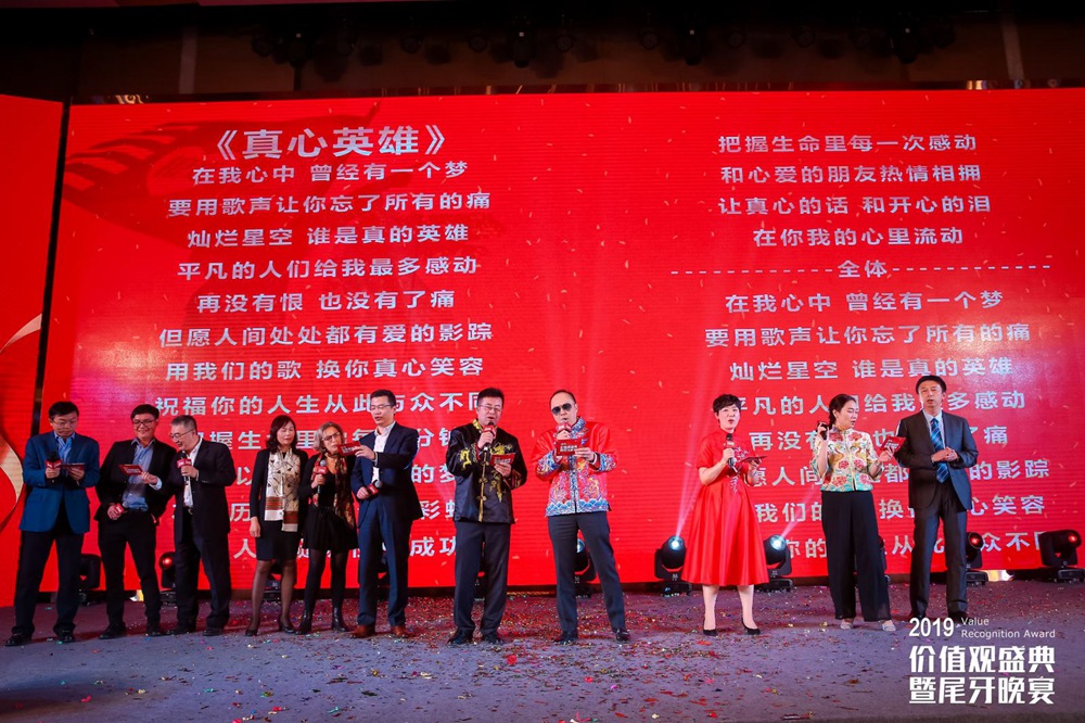最后,總裁兼首席執(zhí)行官孫亦農(nóng)先生攜眾高管登臺(tái)演唱《真心英雄》,全場同唱一首歌,共筑一個(gè)夢(mèng)。
