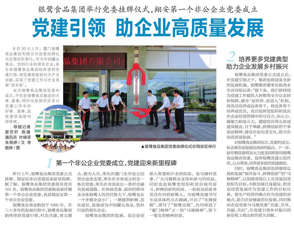 銀鷺食品集團舉行黨委掛牌儀式,翔安第一個非公企業黨委成立發布日期:2022-07-01